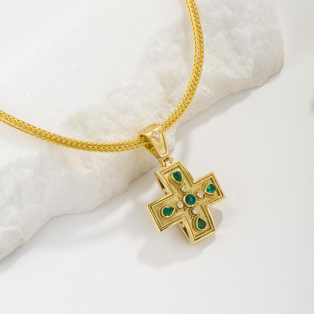 Byzantine collection emerald cross with diamonds