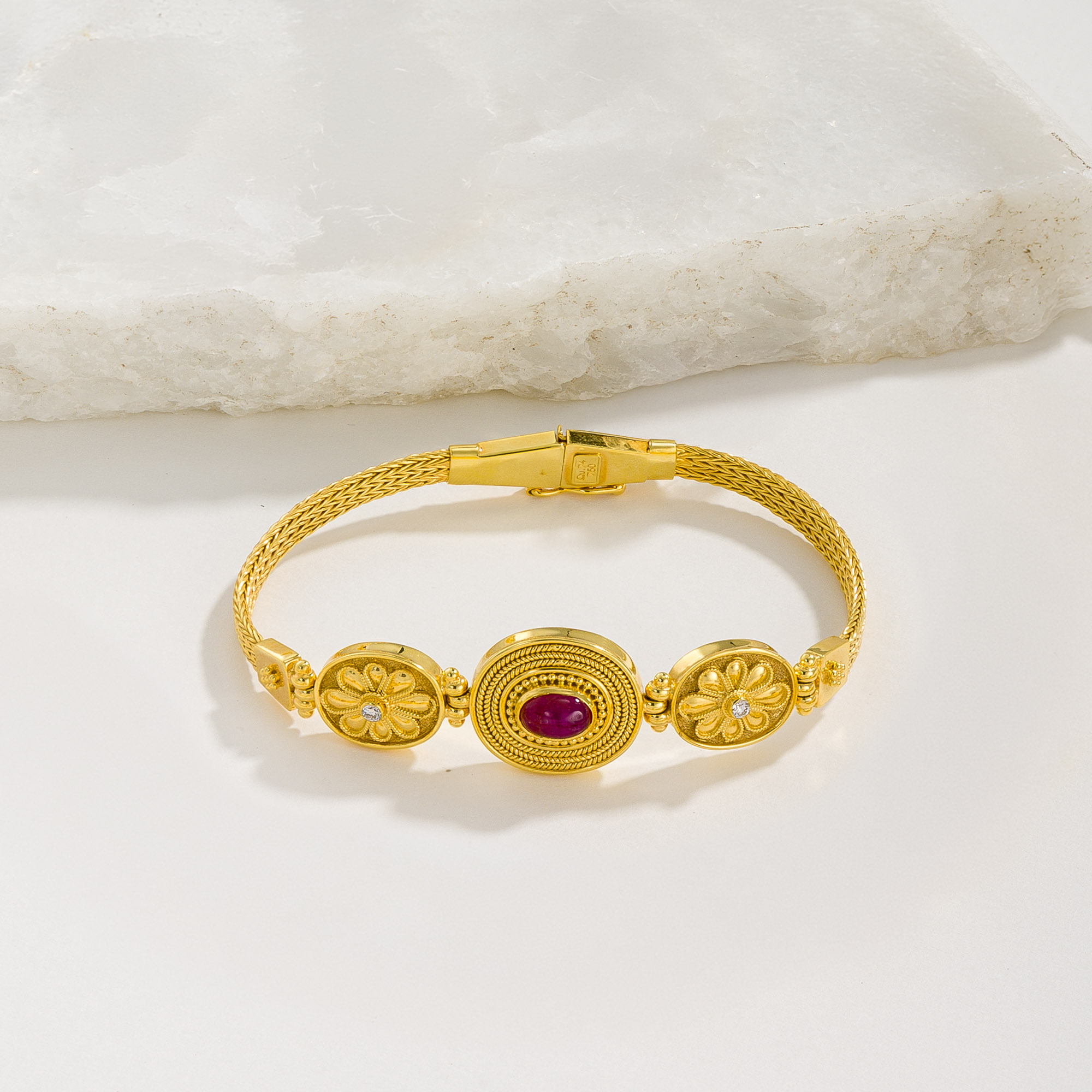 In yellow gold 18kt with rubies & diamonds