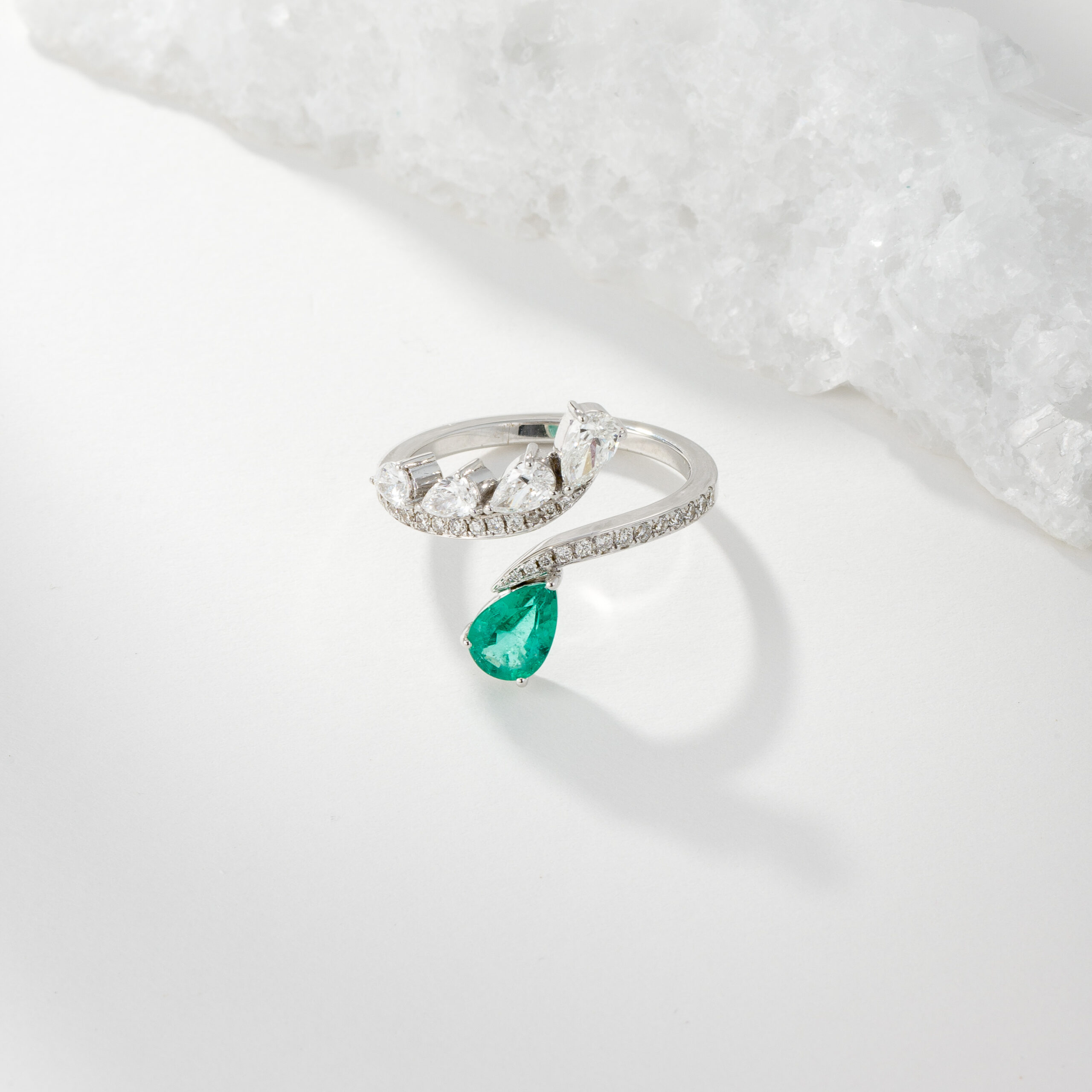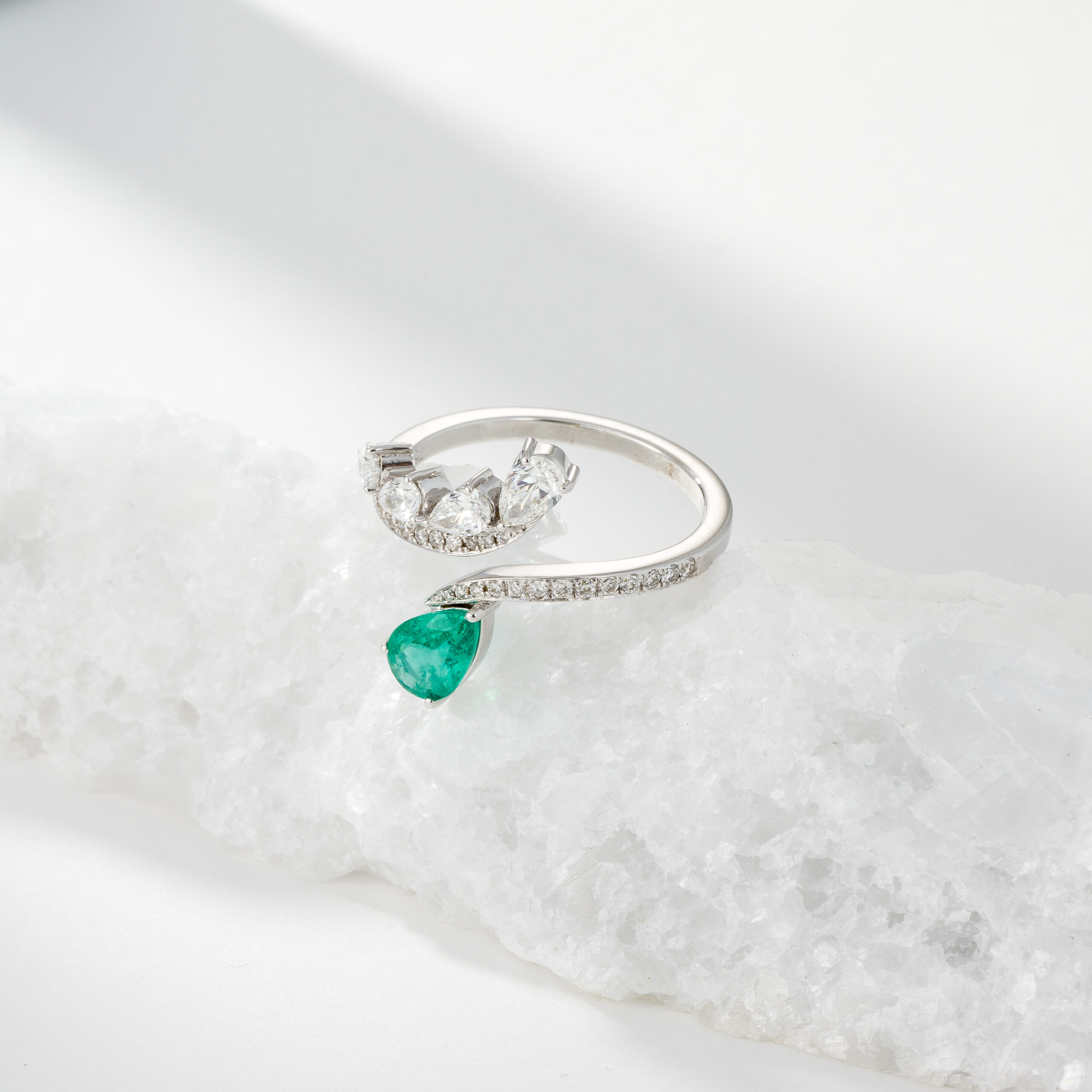 In white gold 18kt with emerald & white Diamonds.